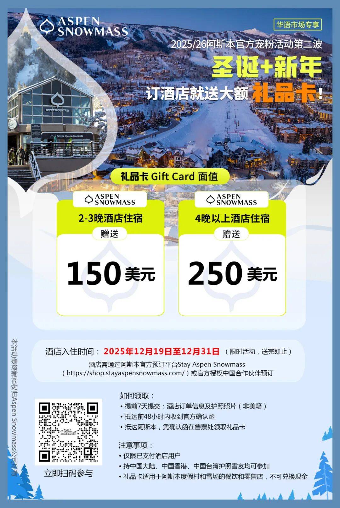美国Aspen 25/26雪季官方宠粉礼品卡活动第二波!